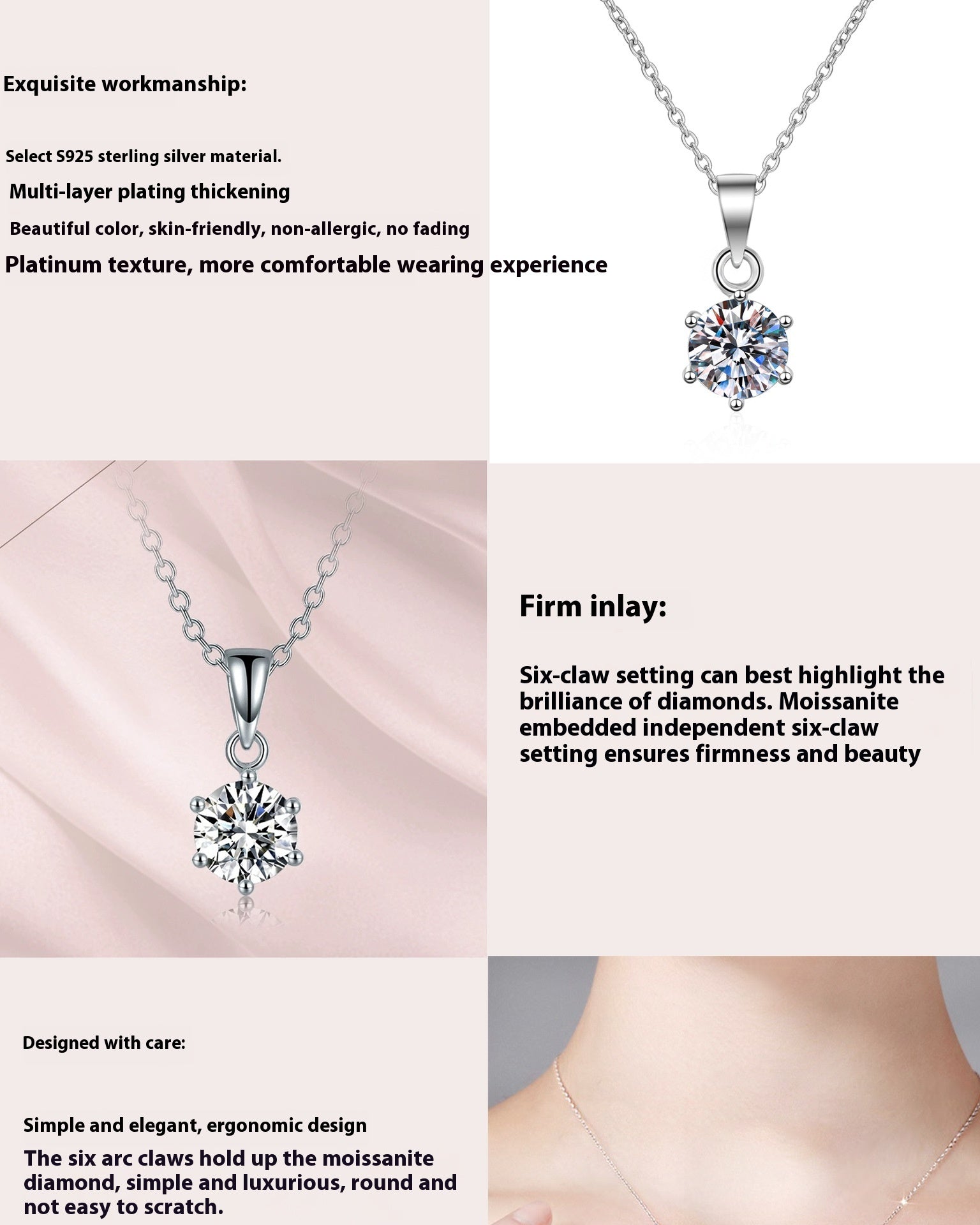 Verleihen Sie Ihrem Look zeitlose Eleganz mit dieser Halskette aus 925er Sterlingsilber mit Moissanit-Anhänger . Sie ist wie geschaffen für Frauen, die luxuriöse Schlichtheit lieben. Der atemberaubende , runde Moissanit-Anhänger funkelt brillant und ist in einer eleganten Sechs-Krappen-Fassung eingefasst, die seinen Glanz und seine Langlebigkeit zusätzlich unterstreicht.