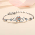 Adoptez une touche d'élégance romantique et tendance avec notre bracelet « Rose », conçu pour la femme moderne qui adore les accessoires féminins et modernes. Fabriqué en argent sterling 925 véritable, ce bracelet est orné d'une magnifique moissanite de 1,4 carat, rehaussée de zirconias 7A étincelantes disposées en un délicat motif floral, offrant un éclat exceptionnel et une beauté captivante.