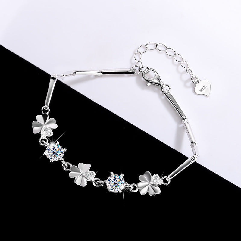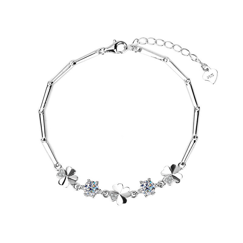 1 × Bracelet en argent sterling S925 et moissanite à motif trèfle à quatre feuilles